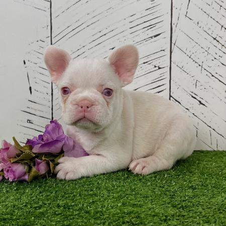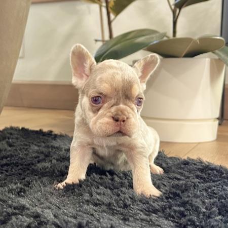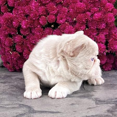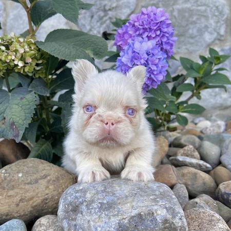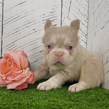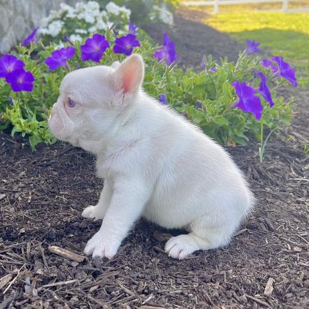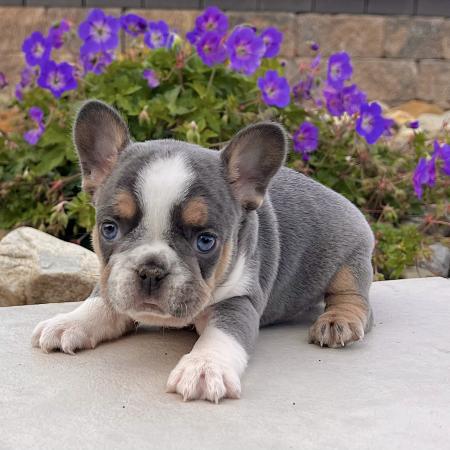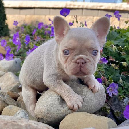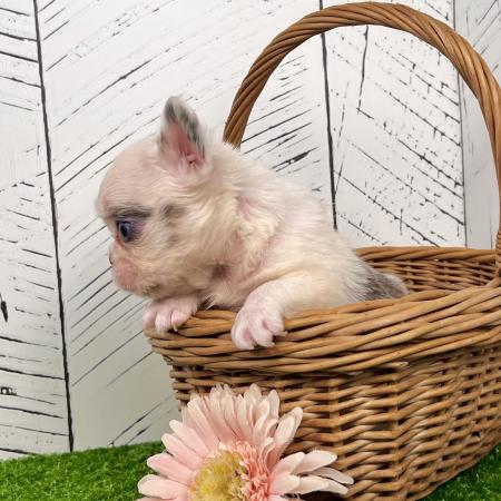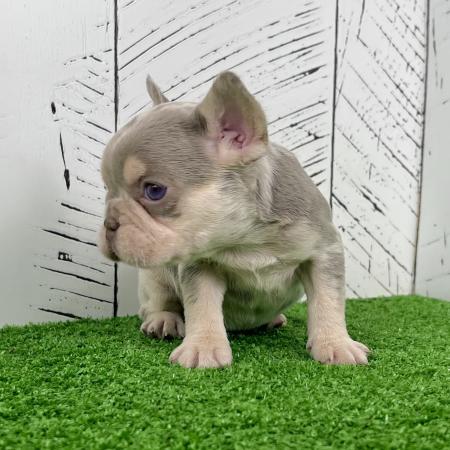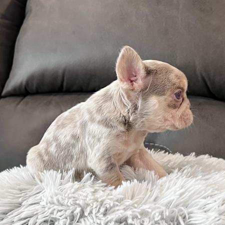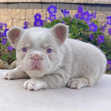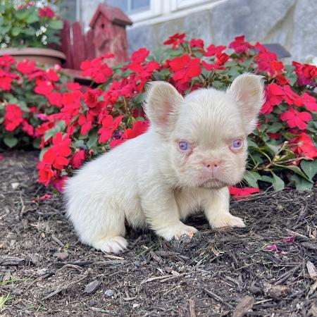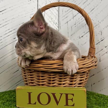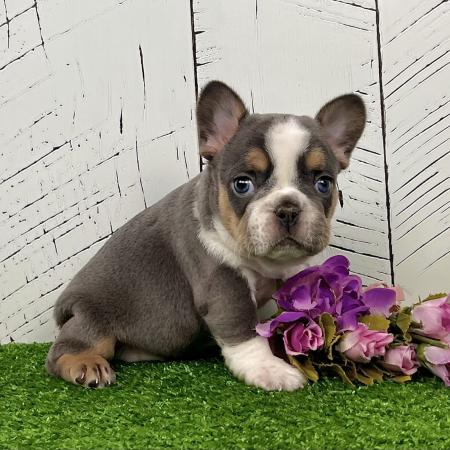 Bonnie is an amazing little lilac tan Merle purebred Akc registered French bulldog puppy! Pretty blue grey eyes! Sweet outgoing personality! Up to date with all shots and dewormings and comes with a health guarantee! Birthdate is 6/2/25. Family raised and well socialized. Ask us about our delivery options! Contact us today to reserve your new family member! Paul at (330-473-8809). Or email paul@5starpuppies.net.