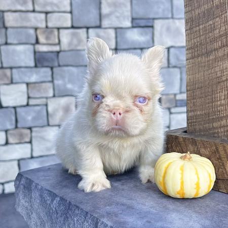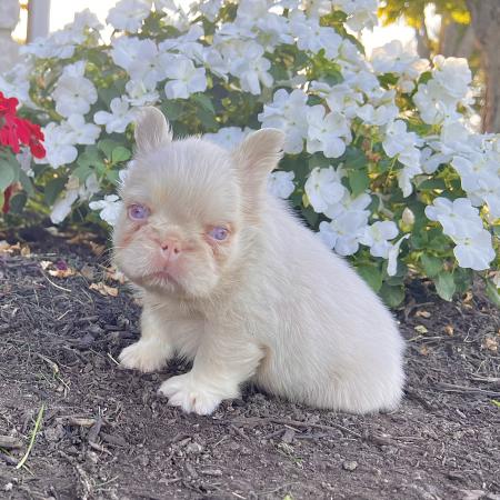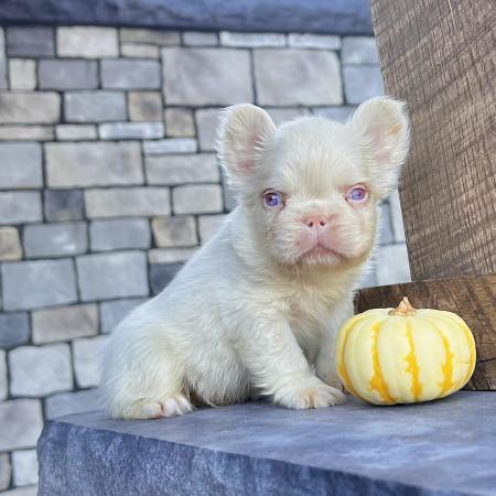 Angel is a gorgeous cream platinum, fluffy, purebred AKC registered French Bulldog puppy! With her stunning coat and lovable personality, she’s ready to melt hearts and become the perfect addition to your family.