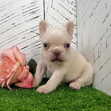 Say hello to Barbie, an enchanting purebred AKC French Bulldog with a soft blend of Isabella, tan, and white (newshade husky) coloring. Her pastel coat pairs perfectly with her stunning blue-green eyes, giving her a bright, expressive look that makes her truly unforgettable.