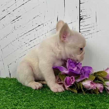 Meet Dolly, an adorable purebred AKC French Bulldog puppy with a soft cream coat, bright expression, and that irresistible Frenchie charm everyone falls in love with. She has a gentle, calm presence and a sweet little face that grabs your heart the moment you look at her.