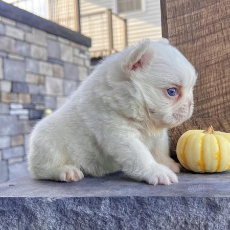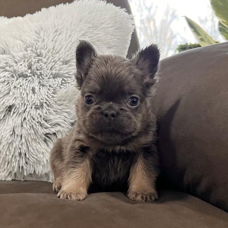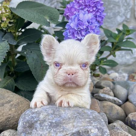 Tony is a tiny lilac fluffy purebred Akc registered French bulldog puppy! Blue grey eyes! Great quality! Up to date with all shots and dewormings and comes with a health guarantee! Birthdate is 3/22/25. Family raised and well socialized. Ask us about our delivery options! Contact us today to reserve your new family member! Paul at (330-473-8809). Or email paul@5starpuppies.net.