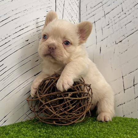 Introducing Angel, a gorgeous cream purebred AKC registered fluffy French Bulldog puppy.