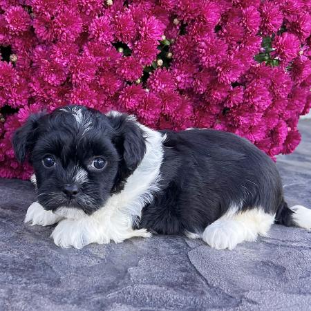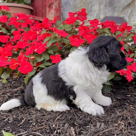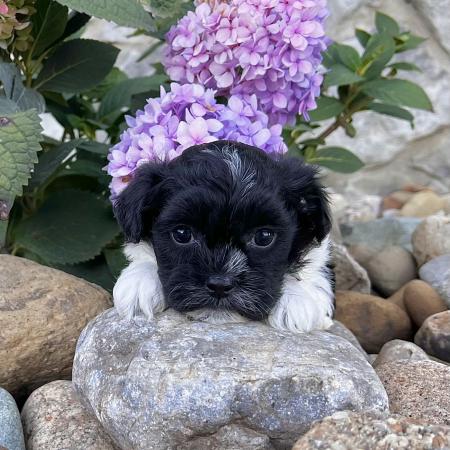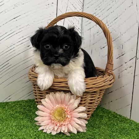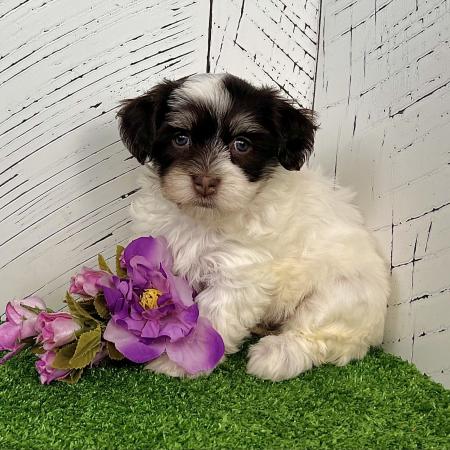 Chloe is a stunning purebred AKC registered Havanese puppy with a striking black and white coat and bright, expressive eyes that perfectly match her charming personality. She’s affectionate, playful, and full of that classic Havanese sweetness that makes the breed so beloved.