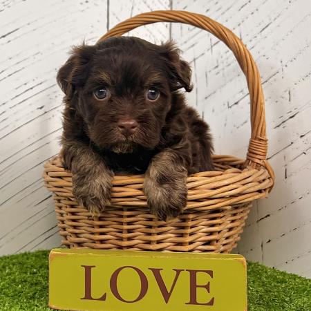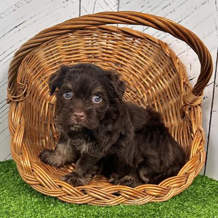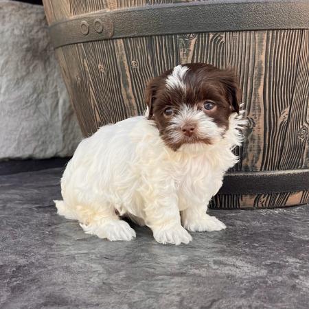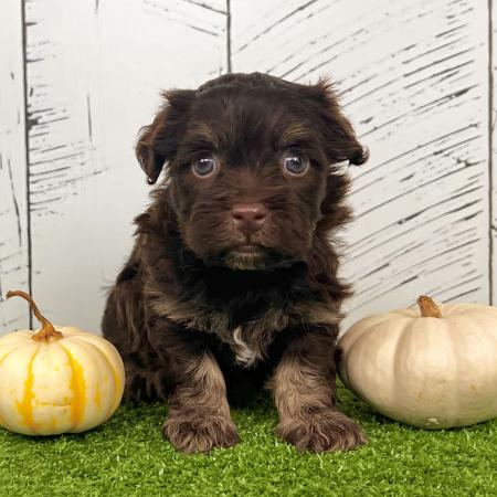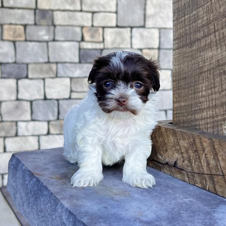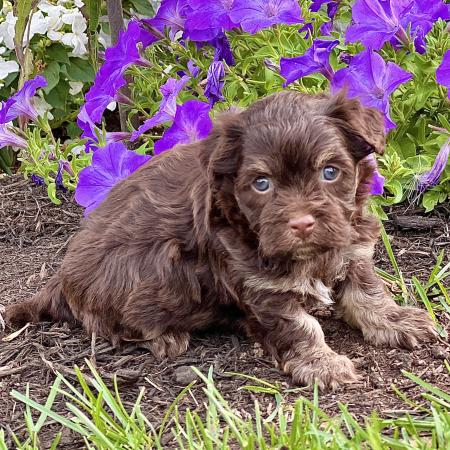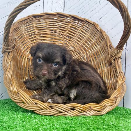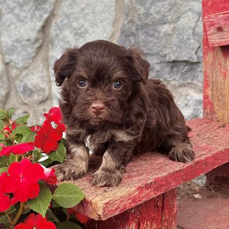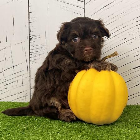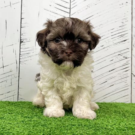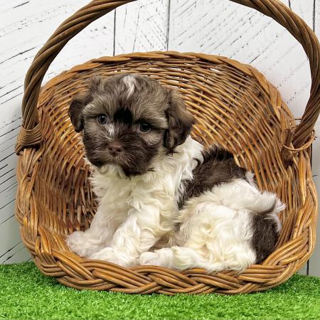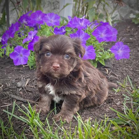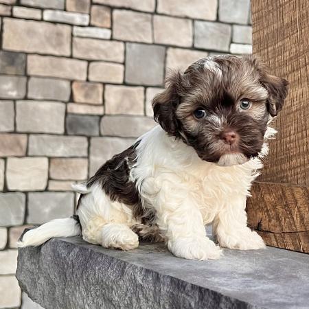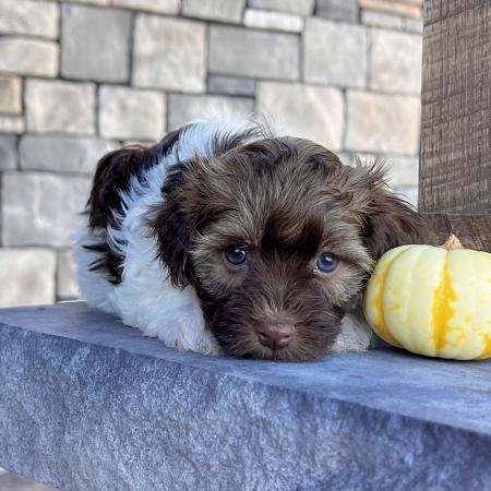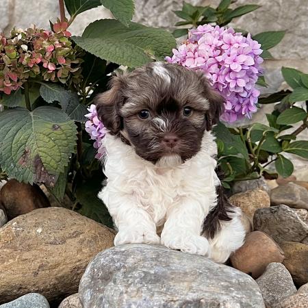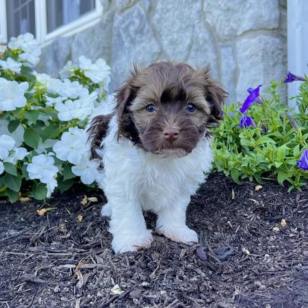 Say hello to Garfield, a dashing chocolate and tan Purebred AKC Registered Havanese puppy with a sweet white chest patch that makes him extra special. With his soft, wavy coat and warm, soulful eyes, Garfield is the kind of puppy who melts hearts the moment you meet him.