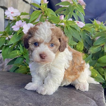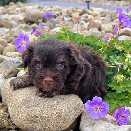 Raised in a loving family environment, Chloe is well socialized and used to being handled with care and affection. She’s the kind of puppy who loves to cuddle but also enjoys exploring and playing by your side.