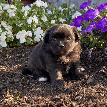 Cookie is a purebred AKC registered Havanese puppy with a beautiful black and tan coat and big, soulful eyes that are impossible to resist. Her sweet and playful nature makes her the perfect little companion for any home.